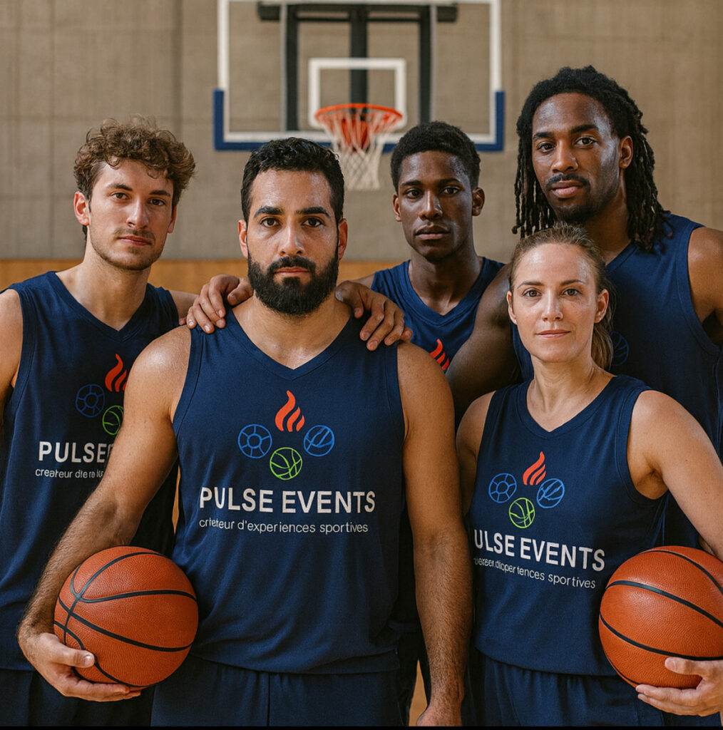 L’équipe Pulse Events, réunie sur le terrain, représente l’esprit sportif et l’énergie qui animent nos événements. Cette image illustre la cohésion et la diversité des participants qui prennent part à nos tournois de basket. De plus, nous mettons un point d’honneur à créer des expériences immersives où passion et convivialité se rencontrent.