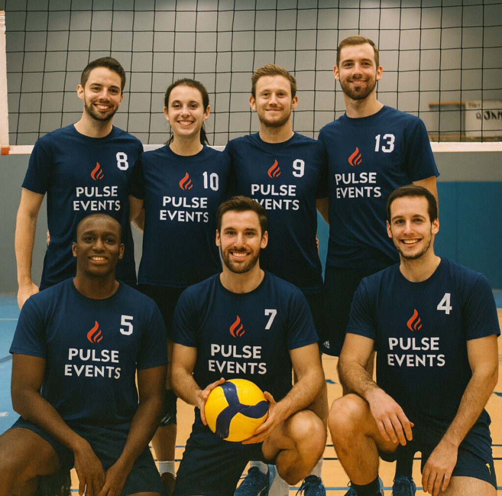 Ainsi, cette image reflète ce que nous avons construit : des équipes motivées, soudées, prêtes à se dépasser tout en partageant des moments forts. Le volley, chez Pulse Events, n’est pas seulement un jeu. c’est un vecteur d’émotions, de rencontres et d’énergie positive. Enfin, grâce à notre expertise et à la confiance des participants, nous développons des événements toujours plus ambitieux, où le plaisir de jouer et l’esprit sportif restent au cœur de chaque initiative.